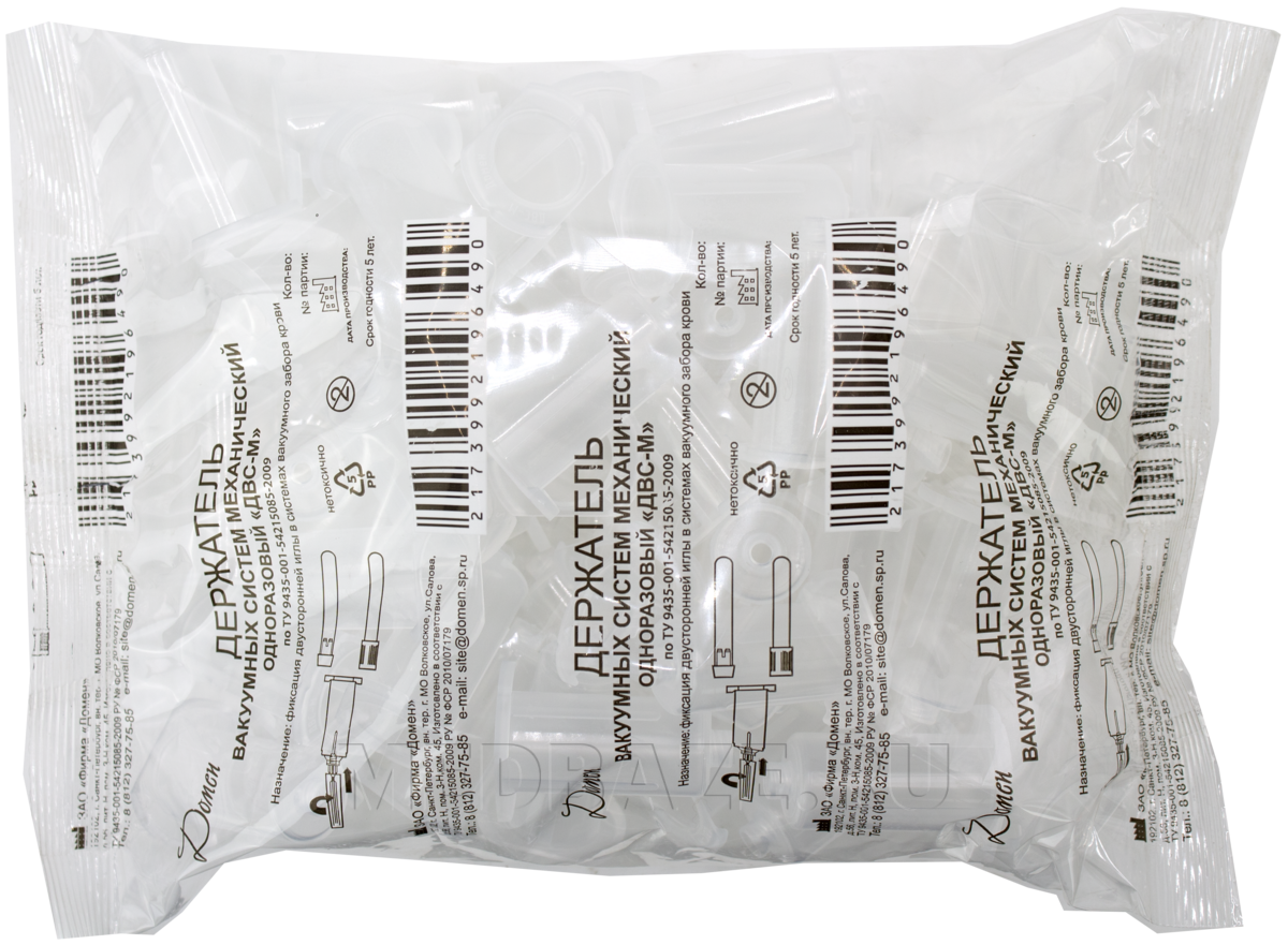 Описание: Держатель вакуумных систем механический одноразовый ДВС-М является неотъемлемой частью вакуумной системы для взятия крови. Используется для крепления двусторонней иглы. Благодаря универсальным размерам, подходит ко всем типам пробирок. Обеспечивает совместимость с механическими иглами любых типоразмеров всех производителей трёхкомпонентных вакуумных систем и жесткую фиксацию иглы.