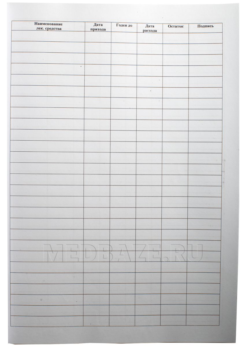 Описание: Журнал формата А4 имеет размеры 210*290 мм, обложку из картона плотностью 160 г/м2 и внутренний блок из белой офсетной бумаги объемом 30 листов в альбомном исполнении. В журнале фиксируются данные учета лекарственных средств в медицинских учреждениях